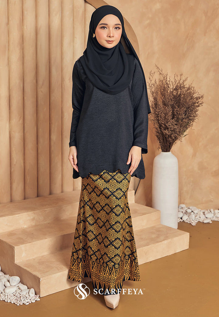 Material:Tops: Luxe Textured SatinSkirt: Pemium Indonesian Cotton BatikTop:- Mini Kurung with scallop- Round neck with wrap button-...