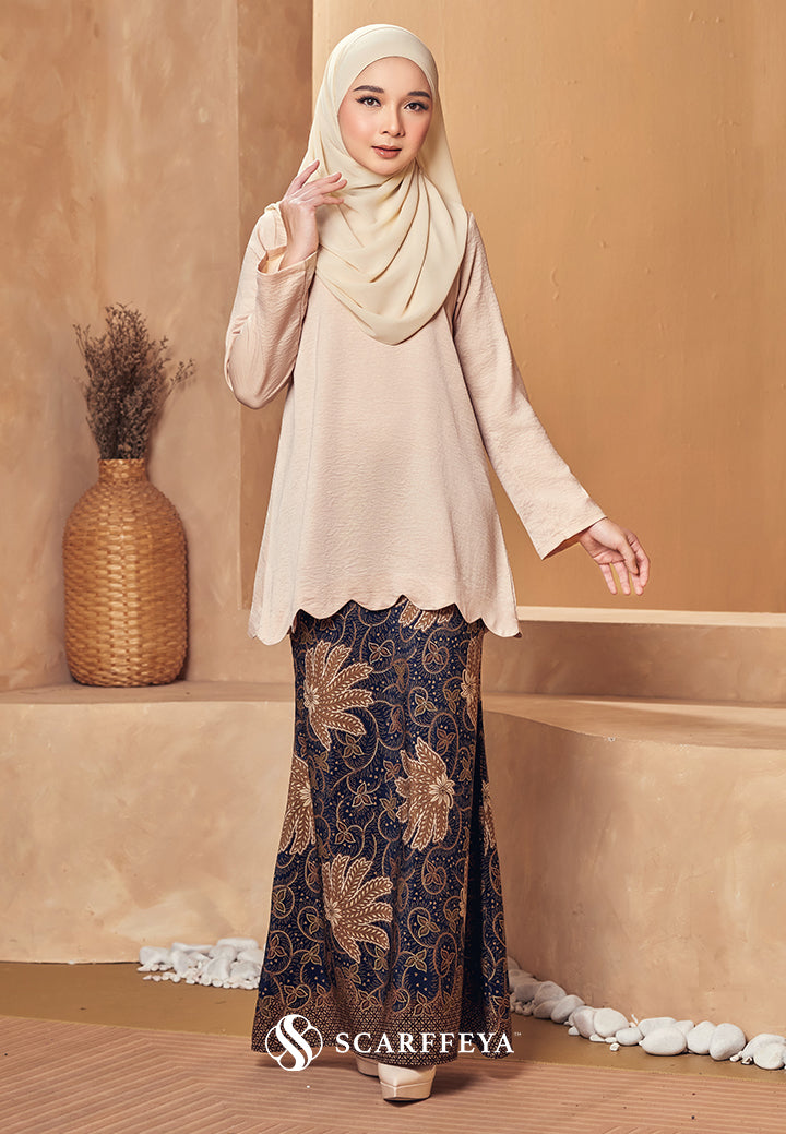 Material:Tops: Luxe Textured SatinSkirt: Pemium Indonesian Cotton BatikTop:- Mini Kurung with scallop- Round neck with wrap button-...