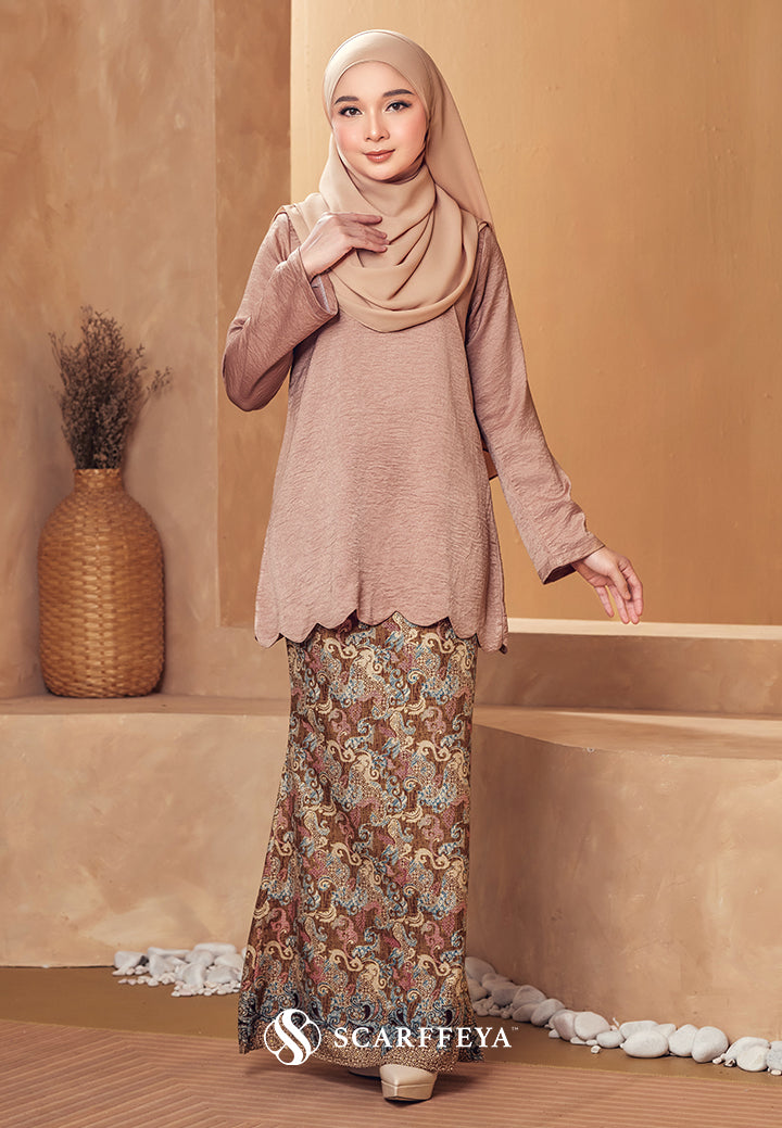 Material:Tops: Luxe Textured SatinSkirt: Pemium Indonesian Cotton BatikTop:- Mini Kurung with scallop- Round neck with wrap button-...