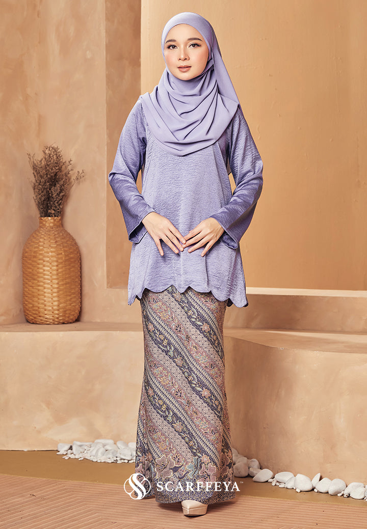 Material:Tops: Luxe Textured SatinSkirt: Pemium Indonesian Cotton BatikTop:- Mini Kurung with scallop- Round neck with wrap button-...