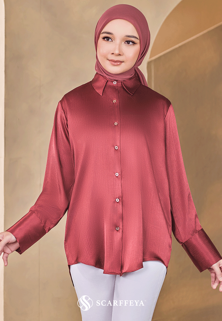 EVA EXECUTIVE BLOUSE • ⁠Material: Jacquard Wrinkle Satin• Wudhu' friendly• ⁠Point Collar• ⁠Cuff gold button• ⁠Full front...